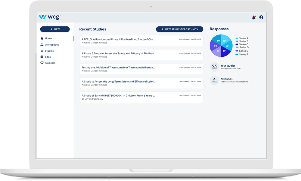 Site Identification to determine the high-performing, best-fit investigators for your study, leveraging WCG’s proprietary investigator match scores.